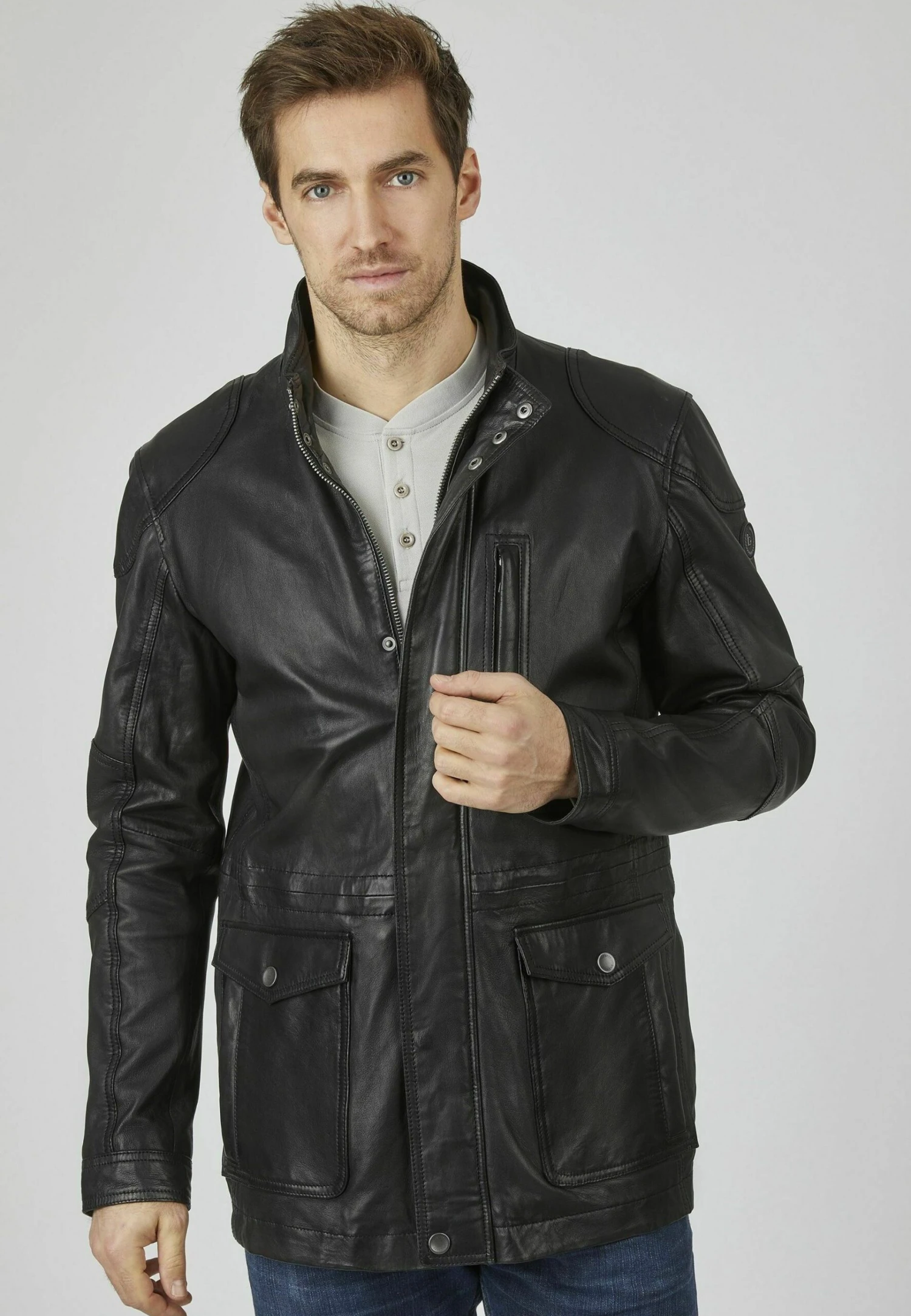 Bugatti Mit Abdeckleiste Und Stehkragen – Leren Jas – Schwarz